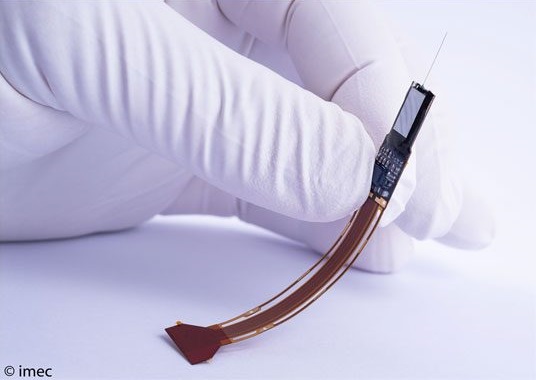 I use Neuropixel probes to record the activity of large populations of individual neurons across many different regions of the brain at the same time. These probes are as thick as a human hair and contain hundreds of contact points to record the electrical potential of neurons as they chatter away.